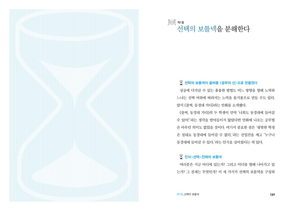 선택의 보틀넥이 꼴찌를 《공부의 신》으로 만들었다 / 인식-선택-전제의 보틀넥 / 인식이 활약의 한계를 속박한다 / 인간은 무엇이든 될 수 있으며 무엇이든 할 수 있다