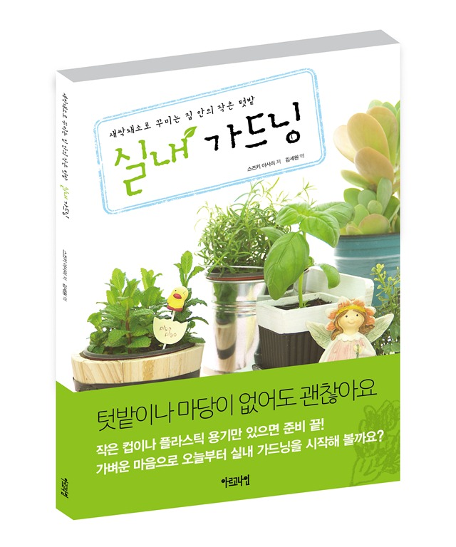 요즘엔 집안에서 비교적 작은 채소나 허브, 새싹채소 등을 직접 길러 먹는 실내 가드닝이 인기죠. 꼭 먹기 위해서가 아니라도 관상용으로 취미생활로 가드닝이 폭넓게 자리 잡았어요. 하지만 아파트 같은 공동주택에 살다보면 작은 채소라도 심을 장소가 마땅치 않아 포기하는 분들이 많죠. 걱정할 필요는 없어요. <새싹채소로 꾸미는 집 안의 작은 텃밭-실내 가드닝>은 좁은 실내에서도 부담 없이 키울 수 있는 채소와 허브, 새싹채소에 대한 모든 것을 알려드릴 거예요. 기본 준비물도 아주 간단해요. 어느 집에나 굴러다니는 컵이나 빈 깡통, 커피 전문점의 일회용 플라스틱 컵 등 화분이 아니어도 더욱 멋스러운 정원을 꾸밀 수 있어요.