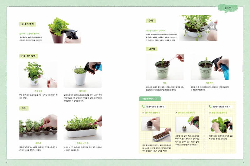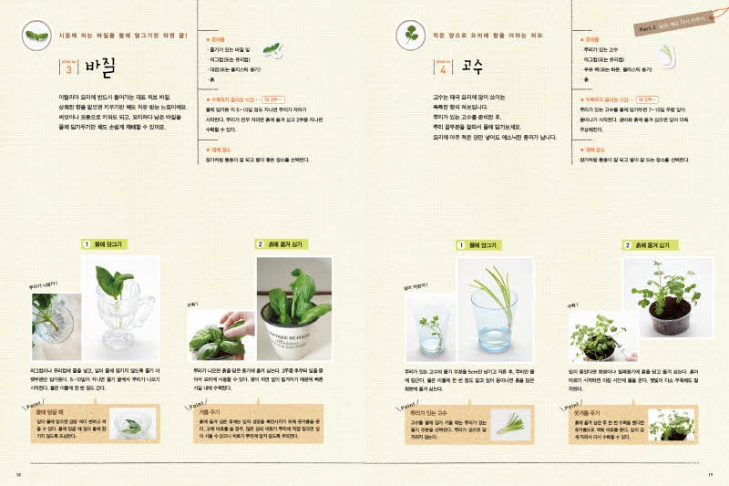 재배 포인트 / plant no.3 바질 / plant no.4 고수 / plant no.5 물냉이 / plant no.6 파드득나물 / plant no.7 대파 / plant no.8 쪽파 / plant no.9 무청