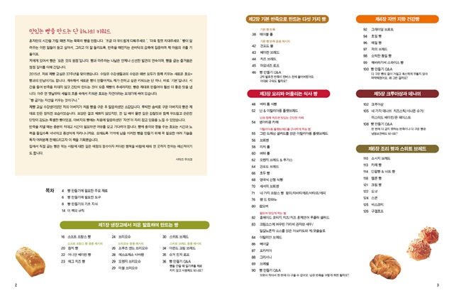 물론 그렇다고 레시피가 부족하진 않아요. 냉장고에서 저온 발효하여 만드는 빵, 기본 반죽으로 만드는 빵, 요리와 어울리는 빵, 자연 지향 건강빵, 크루아상과 데니쉬 등 인기 있는 홈베이킹 레시피를 가득 담았어요! 베이스가 되는 레시피와 이를 응용해 여러 가지 스타일의 빵을 만드는 방식은 누구나 쉽게 도전할 수 있게 만들어 줍니다.
