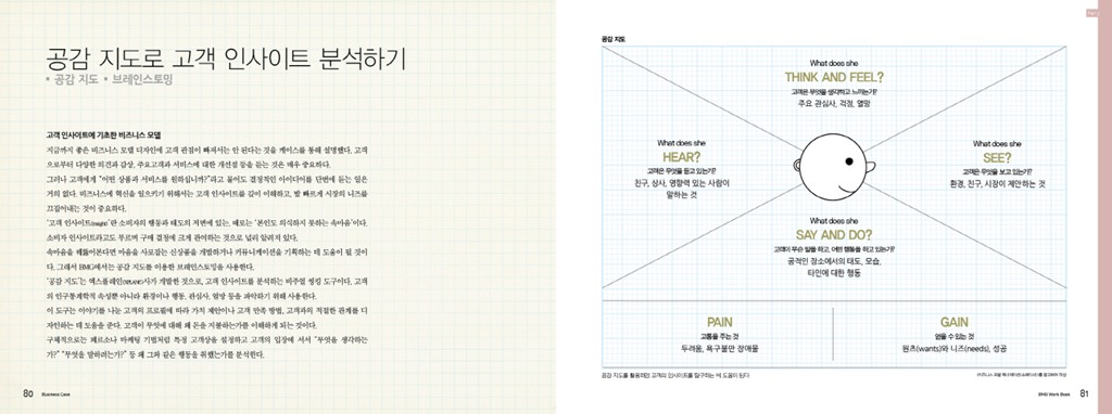 BMG의 캔버스는 개인 이외에도 기업 연수나 교육 프로그램에서도 충분히 활용 가능한 프레임워크이다. 고객이 원하는 상품의 가치가 무엇인가를 고민해보지 않으면 글로벌 비즈니스경쟁에서 살아남기 힘들다. 디자인 사고의 수단으로 BMG의 캔버스는 가치가 있다. <비즈니스 모델 제너레이션 워크북>은 이를 돕는 충실한 길잡이가 될 것이다.