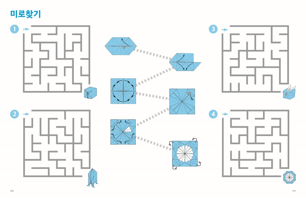 기본 종이접기 58종과 퍼즐·퀴즈 19종에 더해 한국판만의 미로찾기 32종을 새롭게 개발 및 수록했습니다. ‘미로찾기’는 출발점부터 목표까지 가는 동안 여러 번의 시행착오를 통해 집중력을 기를 수 있는 최적의 학습도구입니다.