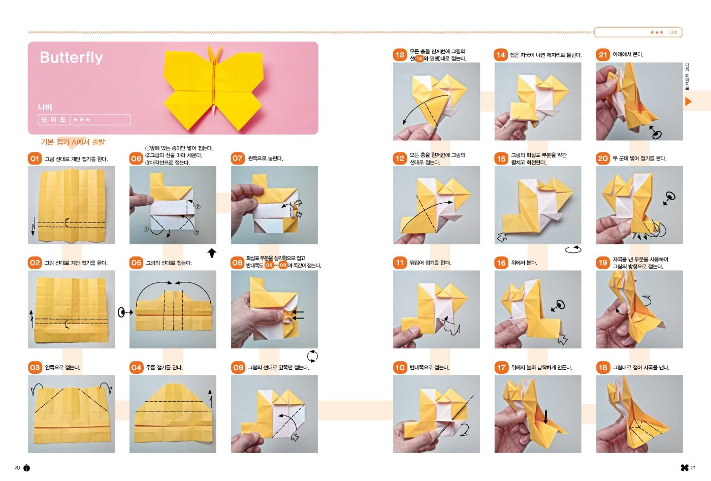 이 책에서 소개하는 작품은 모두 색종이 한 장을 오리지 않고 접기만 해서 만들 수 있어요.