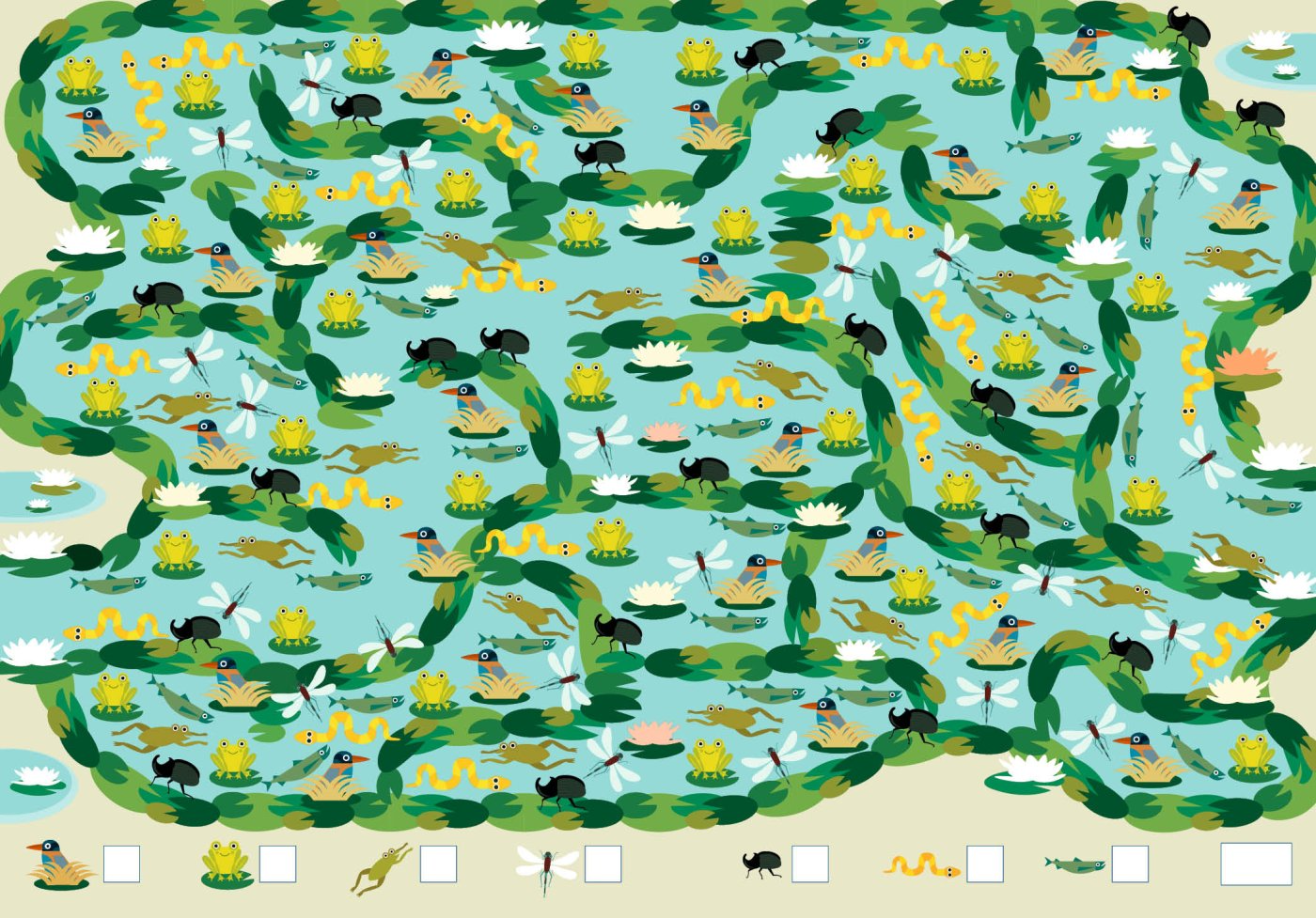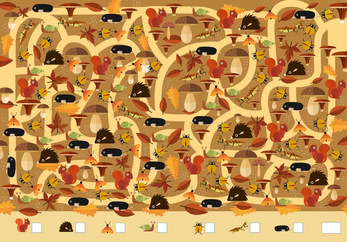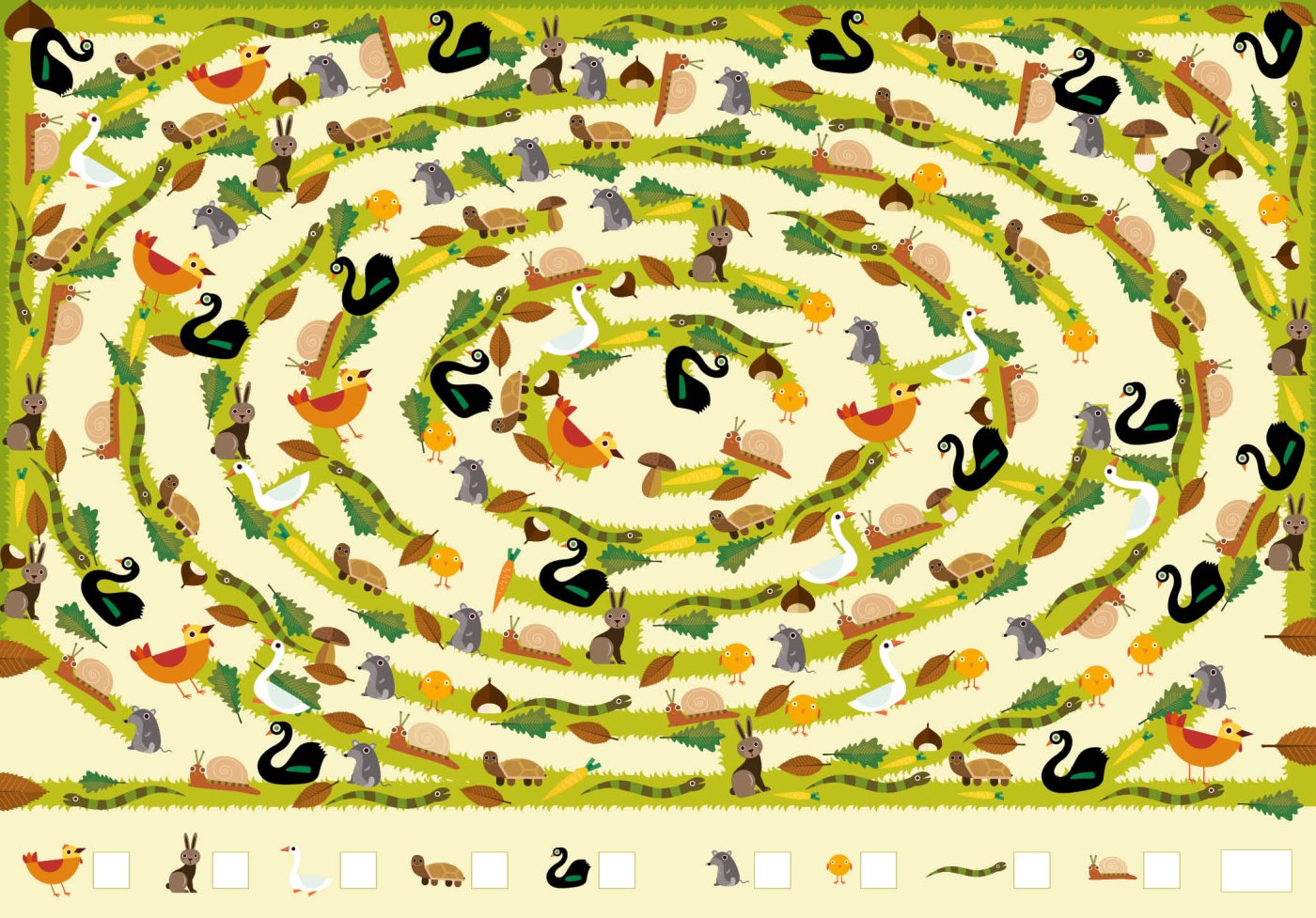 그 다음은 복잡한 동물들 사이에 나 있는 길을 따라 미로를 풀 차례예요.