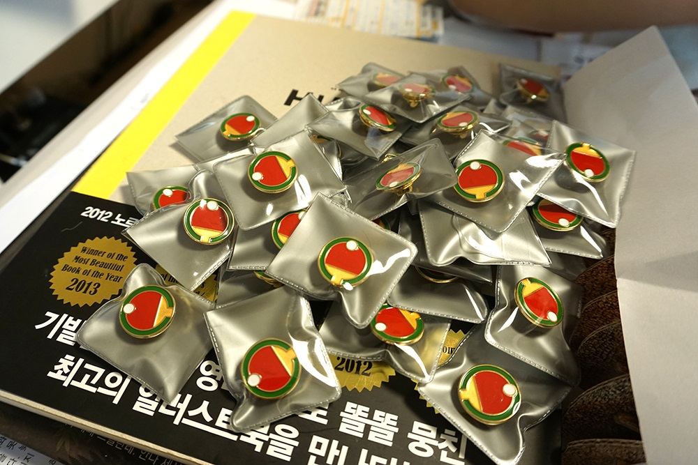 답례품으로 제공할 탁구 남북단일팀 배지 작업이 진행중입니다. 일정에 맞출 수 있도록 샘플을 제작하였습니다. 생산은 다음주에 일괄진행합니다.
