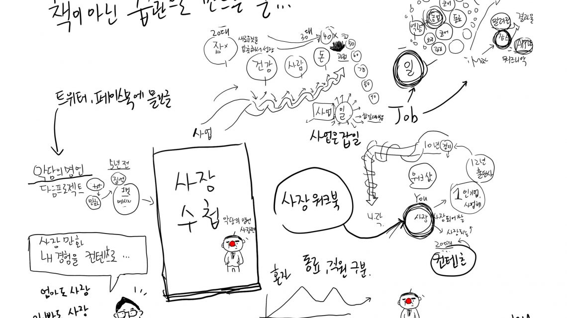 제가 책을 쓰는 과정은 간단한데 복잡합니다. Input을 하고 Output을 다양한 곳에 적용하여 해당 매체에 맞는 글을 A/B테스트하여 반응을 보고 다른 곳에 옮겨 재가공합니다.