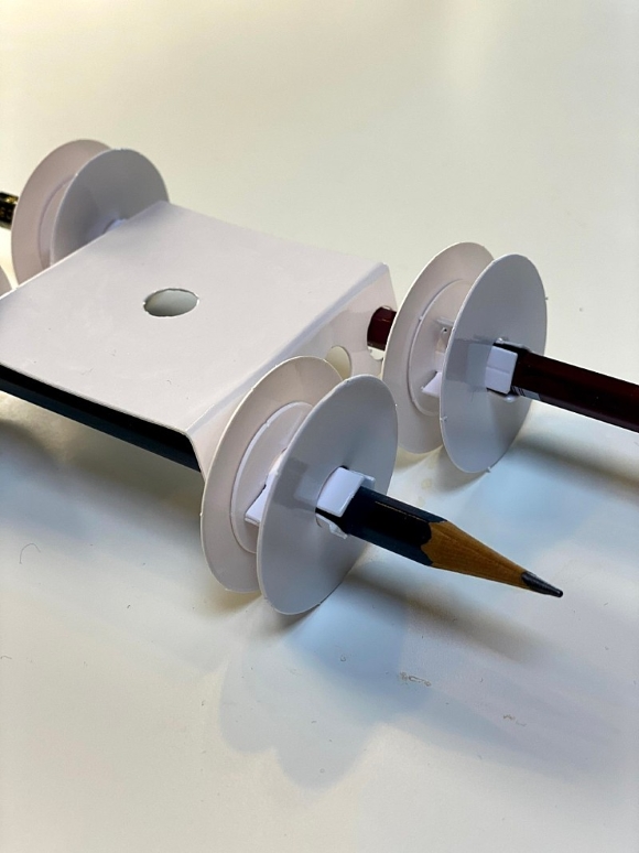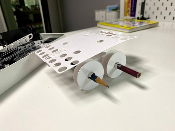 조금 더 길게 만들기 위해 객실칸을 추가했습니다. 이번에는 사인펜도 없어서 둥근연필로 대체하여 사용했어요… 확실히 잘 굴러갑니다. 육각형 연필보다 더 멀리가는데 아무래도 육각은 마찰면이 있어서 그런거 같아요.