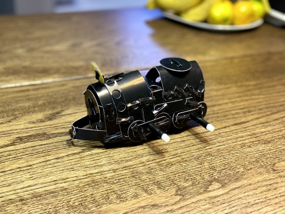 페이퍼브릭 검정색과 컴퓨터사인펜을 이용하여 동작하는 기차를 만들어봤습니다. Wild West 시대에 기차의 모습을 페이퍼브릭을 가지고 구현을 해보려고 했어요 원래 증기기관차라 연통과 물통이 앞에 있어야 하는데 디자인을 할 공간만 남겨두고 1차 완성을 했습니다.