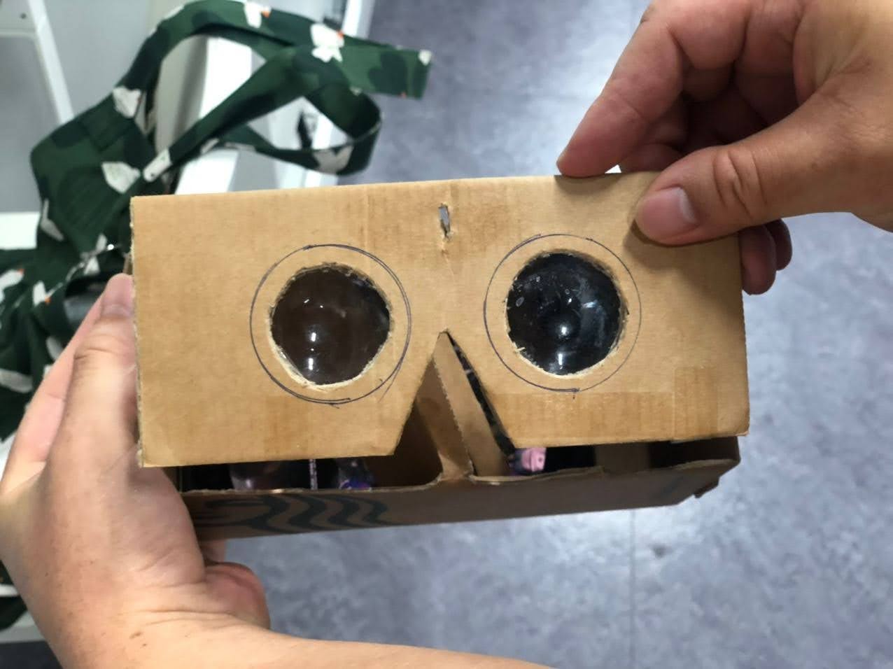 별다른 문제 없이 다른 고정장치 없이 VR을 볼 수 있으며 손을 넣을 수 있기 때문에 인터페이스 조작도 가능합니다. 아래 손가락 하나 들어가는 구멍을 만들면 될거 같습니다. (옛날에 박스로 만든게 부품으로 자석도 아까워 손가락을 넣게 했습니다. )