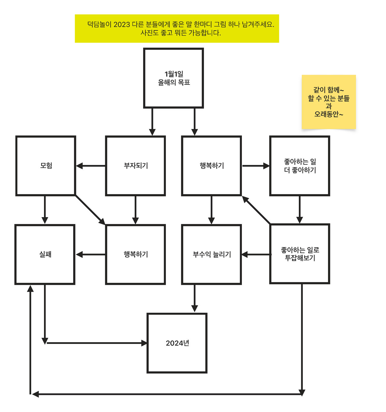 2023년도 2022년도 2024년도 다를게 하나 없는 하루인데 올해의 목표라는 것을 꼭 하는 사람들이 있어서 거기에 걸맞게… 아니 조회수 좀 뽑으려고 이런 그림을 만들어봄