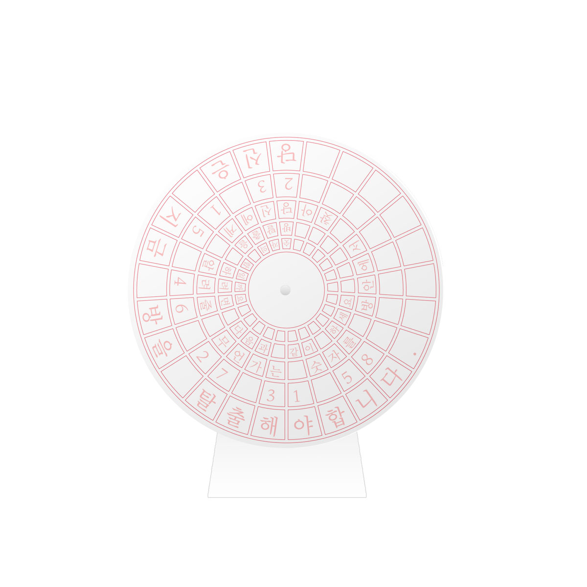 방탈출게임을 만들 생각으로 구성했던 히든메시지 패널 글자가 구멍이 뚫린 원판에 메시지를 돌려가며 맞추면 새로운 글자가 나오는 아이디어를 간략하게 이미 칼선을 만들어 놓은 휠캘린더에 3개의 구멍에 맞춰 휠 원고지에 아이디어를 적용