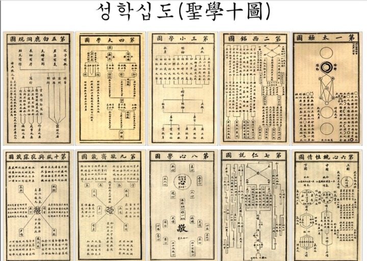 10가지 그림은 한 권 한 권의 책으로 표현하기에도 부족하다 성리학의 원리와 개념을 그림으로 표현해서 알기 쉽게 상소문으로 왕에게 프레젠테이션을 한 것이다.