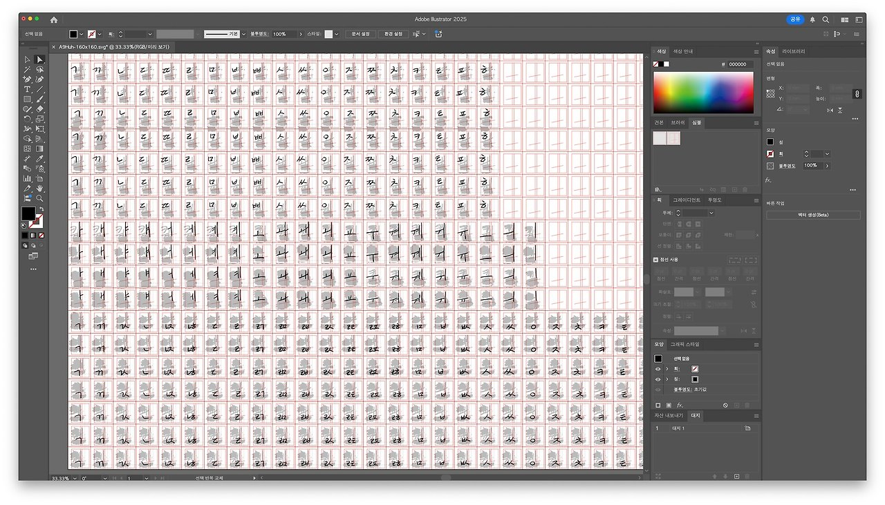 전에 썼던 글씨를 다시 업그레이드하면 또다시 폰트로 만들 수 있는 방법에 대해서 부분 재편집이 가능한 형태로 글자를 심벌 화하여 관리하는 구조로 제작 중입니다.