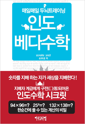 제 목: 매일매일 두뇌트레이닝 인도 베다수학 저 자: 손호성 펴낸 곳: 아르고나인 판 형: 180260(46배판) 페이지수 : 128p 발 행 일 : 2008년 5월 20일 정가 8,000원 ISBN 9788996103417 부가코드 03410 —————————————————————————— 매일매일 두뇌트레이닝 인도 베다수학 책소개 숫자를 지배하는 자가 세상을 지배한다! 인도 수학 시크릿 93×97, 25², 132×138 를 단 2초에 푸는 방법 인도는 아시아에서 일본을 제치고 중국 다음으로 억만장자가 많은 나라로 경제전문지 ‘포브스’에서는 인도 억만장자의 순자산은 총 3천5백10억불로 2003년 34명에 53명으로 늘어났으며 이중 4명은 포브스에서 선정한 억만장자 10명에 포함되었다. IT 분야 수출이 전체산업에 50%를 차지할 정도로 과학과 수학에 대한 실력이 유독 두드러질 정도며 전문 교육을 받은 계급은 일반적으로 육체노동을 경시하고 정신노동력을 숭배하여 제조업보다는 IT와 주식, 우주, 금융 서비스분야에서 강점을 보이고 있다. 인도의 수학실력은 유독 두드러져 초등학교 저학년들이 19단을 술술 외우며 고등학교 수학 교과과정의 일부는 국내 대학생들의 수준이다. 인도 대학(IIT)에 들어가는 것은 치열한 경쟁을 통해 이루어져 수학실력은 그들의 미래를 좌우한다고 말할 수 있다. 비밀리에 전수되는 인도 베다수학 4대문명의 발상지인 인도는 산스크리트어로 수냐(sunya)라는 ‘0’ 의 발명과 함께 전 세계적으로 사용되는 아라비아 숫자의 종주국이다. 인 도의 최고계급 브라만은 자신들을 모든 지식의 수호자라 칭하고 대대로 종교 지식을 전수했는데 다른 하위 계층들이 자신들의 지식을 막기 위해 글자로 남기지 않고 구전으로 전수하는 방법을 택하고 그 내용을 쉽게 외우게 하기 위해 시의 형태를 빌렸다. 그들은 상류층이 사용하는 언어인 산스크리트어로 사용하여 다른 일반인들이 이 내용을 이해하지 못하게 막아 자신들만의 지식전달 및 통치수단으로 사용한 것이다. 엄청난 양의 경전 내용을 외워야 하는 브라만 계급은 뛰어난 암기력과 지식을 가진 특권계층으로 현재의 많은 인도부자들이 이 계급에 속하고 있다. 매일매일 두뇌트레이닝 인도 베다수학 이 책은 구전(口傳)으로만 전해온 브라만의 경전, 베다(Veda)경전의 계산과 수학에 관련된 수트라(Sutura)의 야타르바 베다(Atharva-veda)의 원문을 모두 해석하고 16개의 수트라 (간략한 형태로 표현된 법칙)과 13개의 술바수트라스(이 법칙의 파생)를 재구성하여 서술 현대에 맞게 다이어그램과 계산식을 체계화한 템플릿으로 누구나 쉽게 이해할 수 있게 구성하였다. 미국 MBA과정과 CAT(수학능력시험)에서 수학적 방법을 통한 문제 해결 능력, 논리계산, 대수, 기하 문제, 이자, 복리계산 등에서 베다수학의 내용을 배우는 것으로 알려졌다. 미국에서는 Speed Mathematics라는 이름으로 베다수학이 이미 널리 알려졌고 일본은 인도의 교육방식을 배우기 위해 문부성에서 교과과정에 인도식 수학방법을 추진하는 것이 뉴욕타임즈에 기사로 나오기도 했다. 하나의 문제의 정답에 하나의 풀이과정이 아닌 다양한 풀이과정, 즉 다양한 알고리즘(Algorithm)과 계산체계를 배움으로서 기존에 배웠던 방식을 벗어난 새로운 사고를 기회를 얻는 것이 가능하다. 10자리의 숫자가 같고 1자리의 숫자가 더해서 10이 되면 10자리에 1을 더해 곱한다. 97×93 = (9+1)×9* 7×3 90 21**=9021