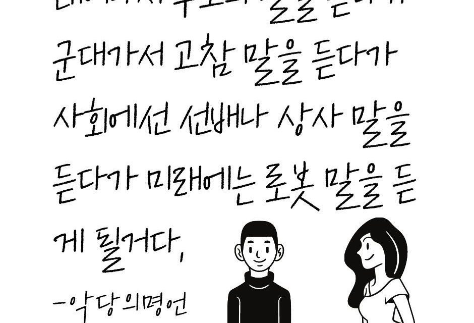 Continue reading태어나서 부모의 말을 듣다가 군대가서 고참 말을 듣다가 사회에선 선배나 상사 말을 듣다가 미래에는 로봇 말을 듣게 될거다. via Facebook Pages http://on.fb.me/1kRSqV6