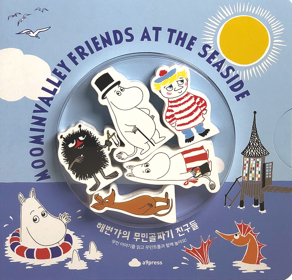 <해변가의 무민 골짜기의 친구들>에는 책의 주인공 무민트롤과 무민마마, 무민파파, 스니프, 스팅키, 투티키가 등장합니다.