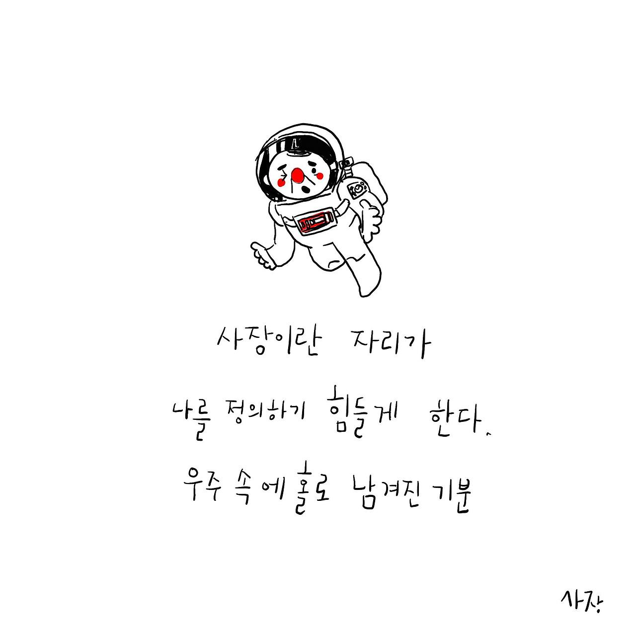 사장툰 13 – 우주 속에 홀로 2025년 11월 30일 작성자: admin 사장툰 13 – 우주 속에 홀로 사장이란 자리가 나를 정의하기 힘들게 한다. 우주 속에 홀로 남겨진 기분 [도서] 악당의 명언 (완전판) 손호성 저 | 생각정리연구소 | 2019년 10월