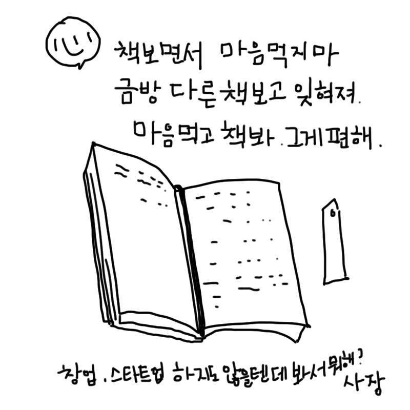 사장툰 12 – 책보면서 마음먹지마 2025년 11월 30일 작성자: admin 사장툰 12 – 책보면서 마음먹지마 가장 필요할 때, 절실할 때 길이 보여… 남의 경험 같은 거 백날 봐야 누구도 가보지 않을 길에 서있을 때 남의 간접경험 같은 건 다 의미 없어. #사장툰 #사장 #만화 [도서] 악당의 명언 (완전판) 손호성 저 | 생각정리연구소 | 2019년 10월