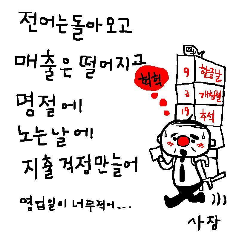 사장툰 6 연봉 2025년 11월 30일 작성자: admin 어제랑 같은 일하고 내일 수익이 더 나아지리라 생각하지 말자. 하던 일은 하던 일… 새로운 일을 찾아서 하지 않으면 앞으로 나갈 수 없다. #사장 #연봉 악당의 명언 손호성 저 생각정리연구소 | 2019년 10월