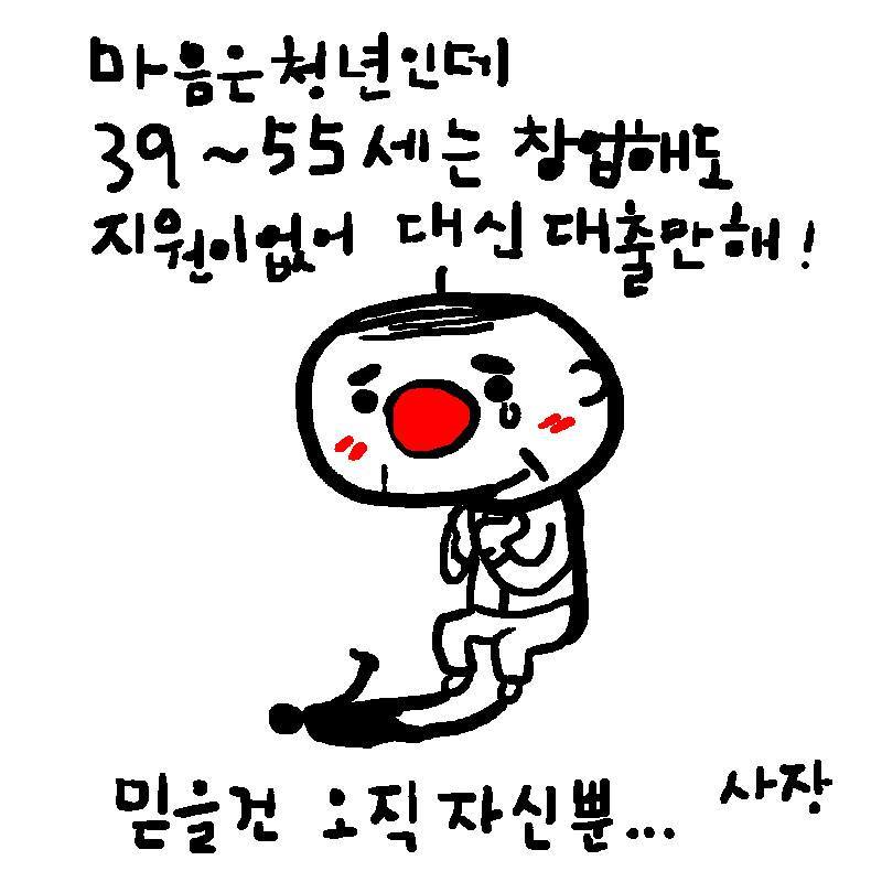 사장툰 3 2025년 11월 30일 작성자: admin 청년창업, 스타트업 말은 많아도 막상 40이 넘어가면 지원정책 하나 없는 나라… 대부분 대출 두발로 내손으로 피흘려서 스스로 의지하지 않으면 나락으로 떨어져… https://www.yes24.com/product/goods/112074041