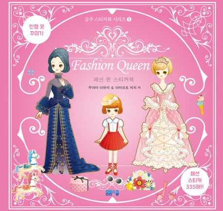 귀여운 여동생 인형, 고등학생 인형, 세련된 엄마 인형을 꾸며보는 패션 코디네이터 스티커북을 표방하는 [패션 퀸]이 탄생했어요!정원, 실내, 상점, 화장대, 외출, 거실, 주방, 놀이공원, 파리, 디즈니랜드에 귀여운 여동생, 고등학생, 엄마 세 가족이 함께 있어요. 스티커는 335매로 10가지 주제에 맞는 인테리어, 소품, 의상을 담았어요. 각 주제별 콘셉트에 맞춰 패션 코디네이션을 완성해 나가요.