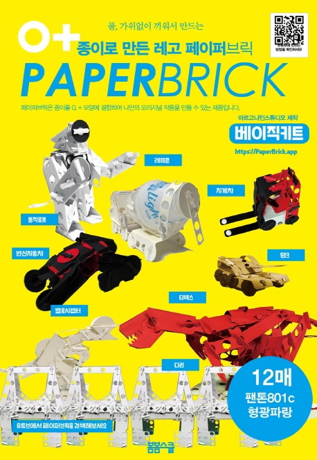 - 『종이로 만든 레고 페이퍼 브릭』은 종이공작에서 한층 더 발전한 3D 종이공작을 할 수 있는 제품입니다. 두꺼운 종이를 O, + 모양에 결합하여 나만의 오리지널 작품을 만들 수 있습니다. 칼선이 되어 있는 2가지 형태의 패턴으로 레미콘, 동작로봇, 지게차, 오토바이, 변신자동차, 건설장비, 탱크, 로봇 변신자동차, 벨로시랩터, 티렉스 등 다양한 장난감과 공룡모양을 만들 수 있으며, 마스크와 결합하여 로봇 마스크를 만들 수 있고 실용성 있는 제품도 만들 수 있습니다. 마치 시중의 “레고”라고 불리는 블록과도 결합하고 떼어내고 새로운 모양을 만들 수 있습니다. 혹시 어려울까 겁을 필요가 없어요! 도안은 기본 설명과 함께 유튜브에 새로운 모델을 계속 올리고 있어 다른 친구들이 만든 작품도 함께 만들어 볼 수 있습니다.