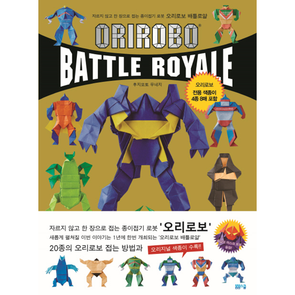오리로보 배틀로얄은 창작 종이접기의 선구자 ‘후지모토 무네지’의 세 번째 오리로보 시리즈입니다. 오리로보, 오리가미 솔져에 이어 보다 진화된 디자인의 오리로보를 만나볼 수 있게 됩니다.