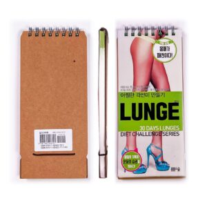 런지] 편은 30일 동안 런지 운동만으로 탄력 있는 허벅지와 매끈한 종아리로 아찔한 각선미를 만든 전 세계의 수많은 사람들의 운동 정보를 기반으로 30일 동안 아찔한 각선미를 만들 수 있는 프로그램이 수록되어 있습니다. 또 그 프로그램을 매일 활용해 운동할 수 있도록 30일간의 다이어리로 구성되어 있습니다. 30일 동안 자신의 몸무게와 런지 운동량 등을 기입하고, 꾸준히 운동할 수 있도록 도와줄 책입니다.[다이어트 챌린지