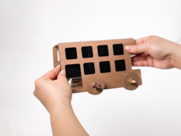 박스와 연필로 만든 2층 버스