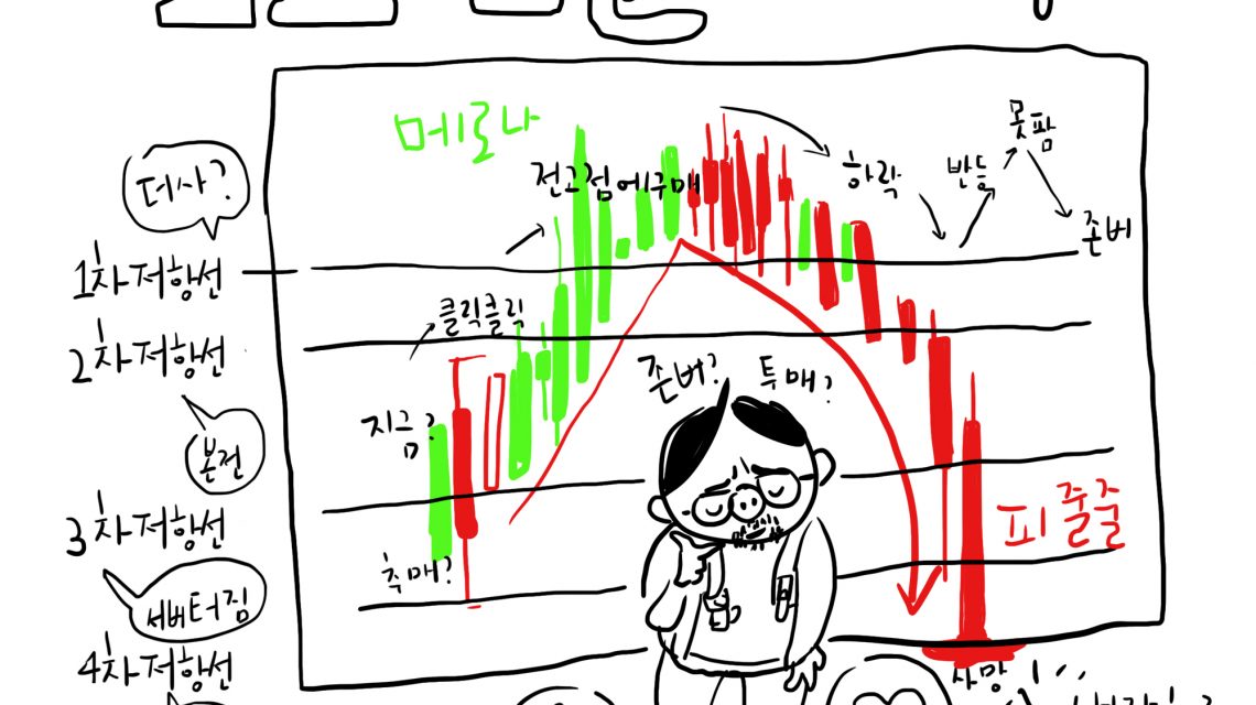 1코인툰 – 위험 속에서 주식시장에서 떨어지는 칼을 맨손으로 잡지 말라는 말이 있다. 칼을 맨손으로 잡으면 칼날에 손이 상할 수도 있고 다칠 수도 있어서 떨어지고 난 다음에 잡는 것을 추천한다는 이야기다. 그냥 잡아봤다. 더 큰 수익이 될수도 아닐 수도 있다. 게임에 참여했으면 게임을 하게 된다. 아니 도박 미리보기 [도서] 생각 정리를 위한 시간의 기술 : 최소의 시간으로 최대의 성과를 내는 90가지 방법!(사은품 : Pilot 지워지는 볼펜 (100P 차감, 한정수량)) 나가타 도요시 저/정지영 역 | 생각정리연구소 | 2017년 04월