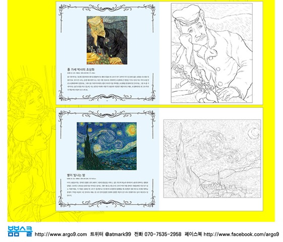 <명화 아트 컬러링북 2>는 화가들의 걸작들을 간단한 정보와 함께 제시하고, 나만의 색깔로 색칠할 수 있는 명화 그림을 제공합니다. 시대를 아우르는 명화들을 색연필, 마커, 파스텔 등 다양한 도구로 색칠하며 집중력과 색감, 미적 감각 등을 높여 보세요. 나만의 스타일로 명화를 색칠하는 시간을 통해 생활의 활기를 되찾아 보세요.