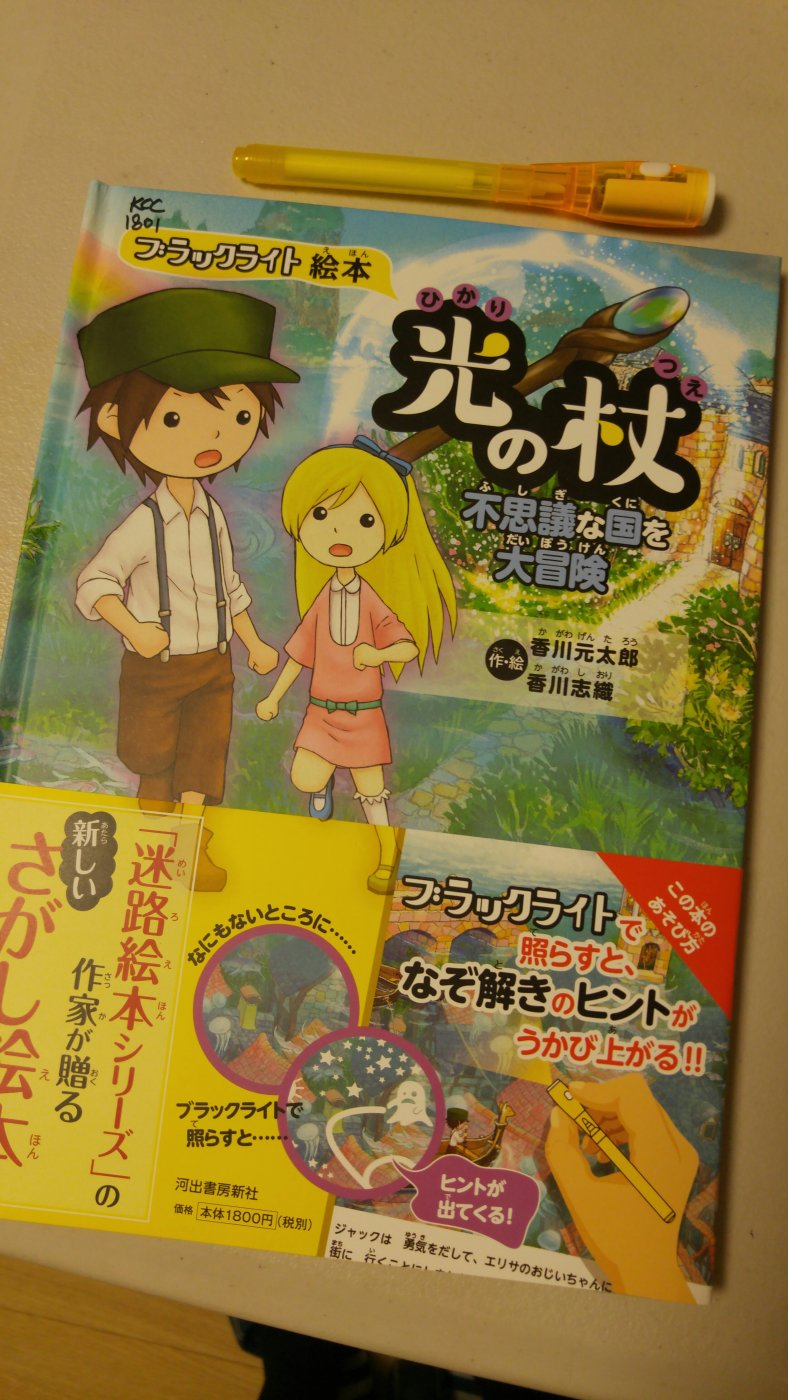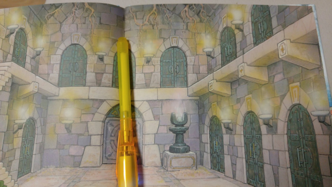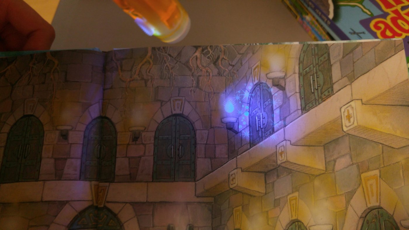 재밌는책 발견! 그림책이면서 퍼즐책 하지만 재미있는 특징은 UV잉크로 인쇄된 부분이 있어 블랙라이트로 어두운 곳에 비추면 그림책에 진도를 나갈 수 있게 힌트를 제공하는 퍼즐책입니다.