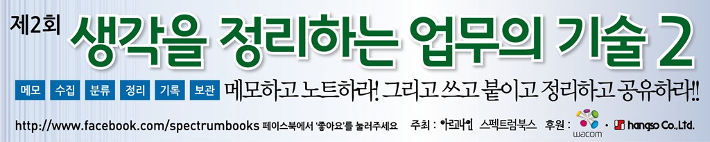이번 세미나에는 (주)항소에서 몰스킨 하드커버 포켓북, 스펙트럼북스의 비즈니스 에버노트, 스터디 노트 등 다양한 선물도 제공될 예정입니다. 와콤코리아에서는 당일 Inkling 제품의 시연 가능한 부스를 설치하고 할인된 가격으로 구매할 수 있는 혜택도 드린다고 합니다.