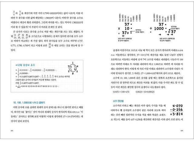 이 책은 학교에서 잠깐 훑고 지나가는, 아니면 수학선생님이 가르쳐주지 않고 생략하고 넘어간 수학의 원리를 아주 쉽게 일상적인 사례들로 해설해 주는 책이다. 먼저 분수의 나눗셈을 할 때 왜 나눗셈을 반대로 뒤집어서 곱해주는가, 음수에다 음수를 곱하면 어째서 양수가 되는가와 같은 기초 개념을 짚어주고 더 나아가 문장제 문제들을 풀어내는 데 필요한 수학적 사고와 요령을 알려준다.