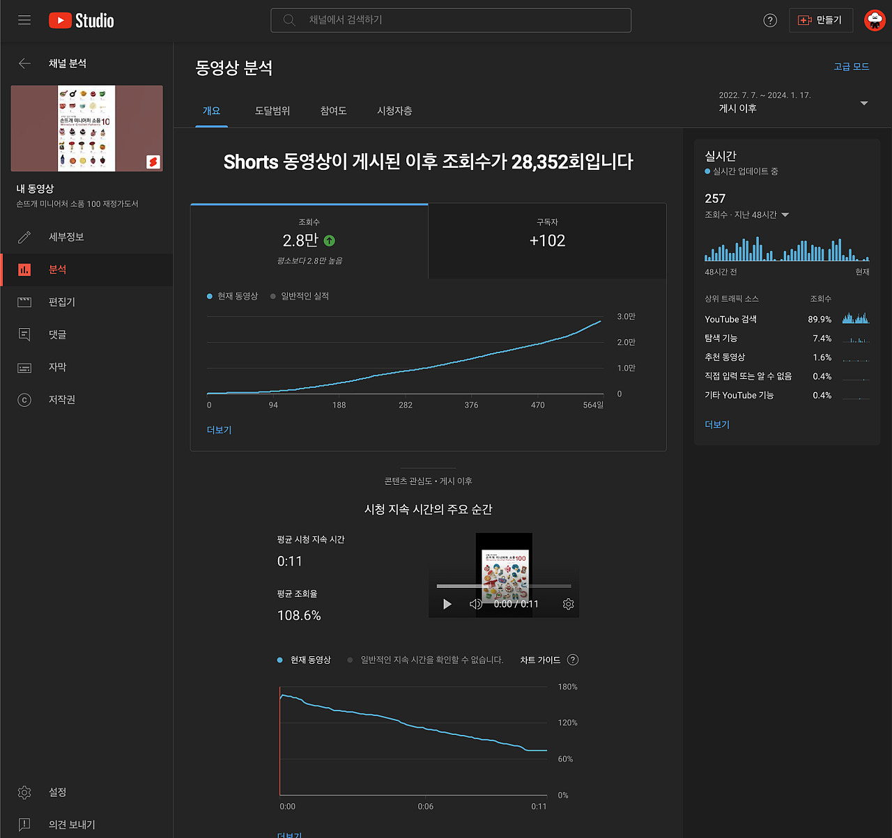그런데 2022 7.7 일 ~ 오늘까지 꾸준히 이 영상 하나로 구독자를 늘리고  재쇄를 이끌어냅니다.