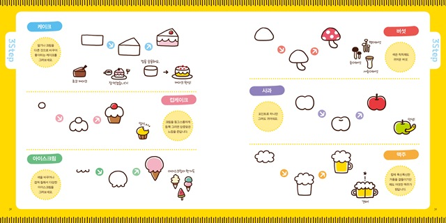 하지만 그림 솜씨가 없어도, 예쁘게 꾸밀 수 있는 감각이 떨어져도, 그냥 보고 따라 그리기만 하면 감성이 물씬 풍기는 아기자기한 일러스트를 뽐낼 수 있답니다. 봄봄스쿨의 문구 일러스트 시리즈 1탄 <문방구 볼펜 일러스트 466>에는 알록달록 컬러풀한 펜으로 그리는 일러스트 예제와 노하우가 무려 466가지나 담겨 있으니까요.