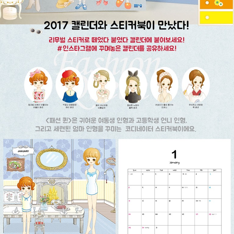 패션 코디네이터 스티커북-패션 퀸 + 2017 탁상달력