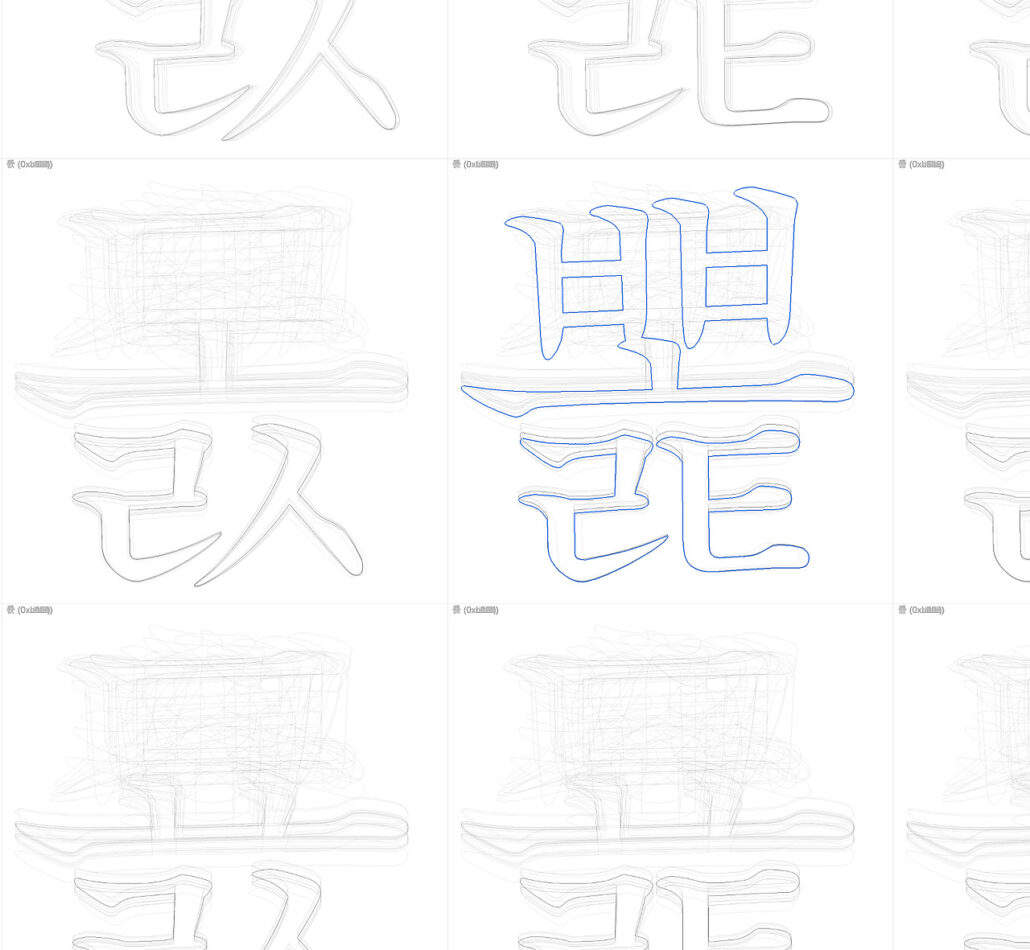 계속 늘려만 가려는 것은 아니고 부리, 삐침, 획의 두께, 모양을 전부 떼어 놓고 레고처럼 스트로크 앞, 뒤에 붙게하는 방식을 생각해둔게 있습니다. 그것을 하기 위한 과정이라고 보면 될거 같습니다.
